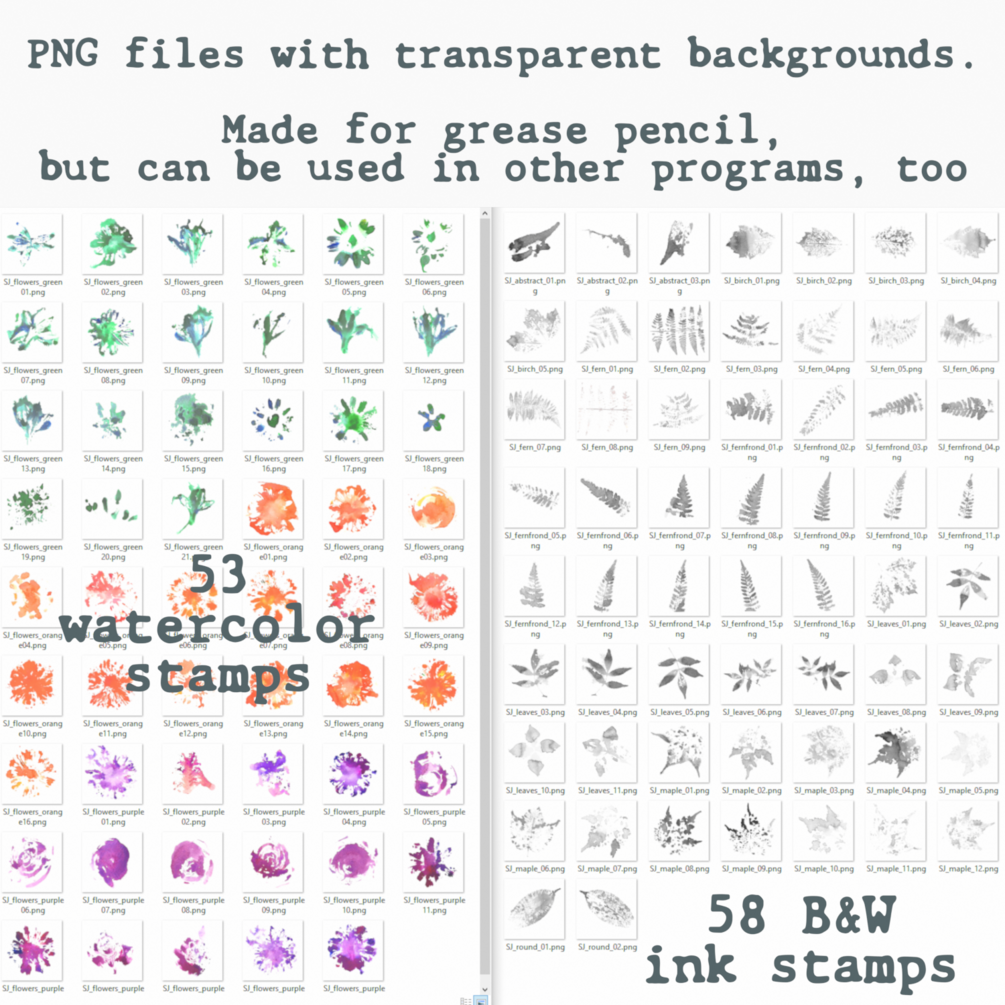 Although these can be used however you wish, I created them because I love using them with Blender's grease pencil tool. To see how I use them in my art, you can check out this video: